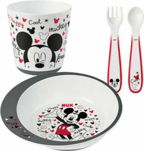 To Εκπαιδευτικό Σετ Φαγητού Disney Baby Mickey Mouse της Nuk, είναι κατάλληλο για μωρά άνω των 9 μηνών.